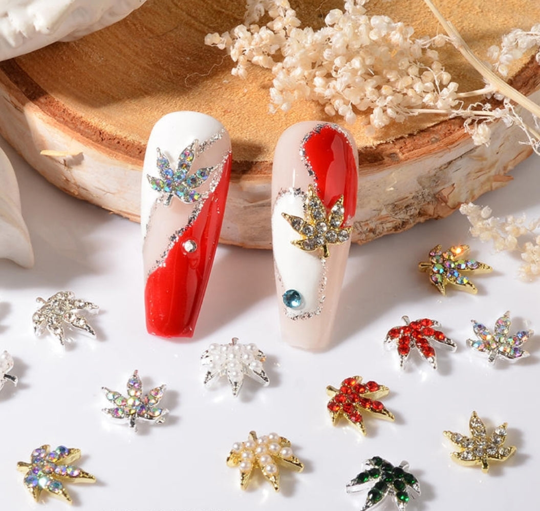 10pcs Alloy 3D Maple Leaf Nail Art Charm