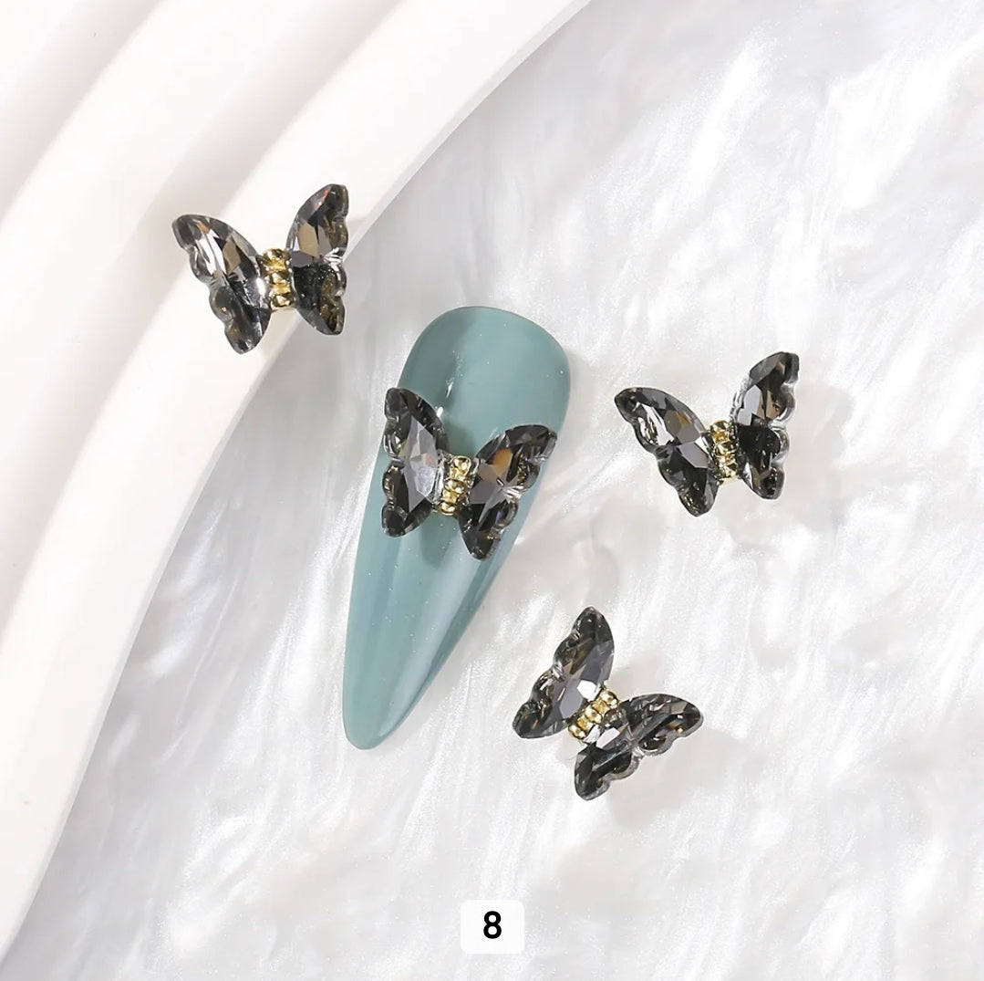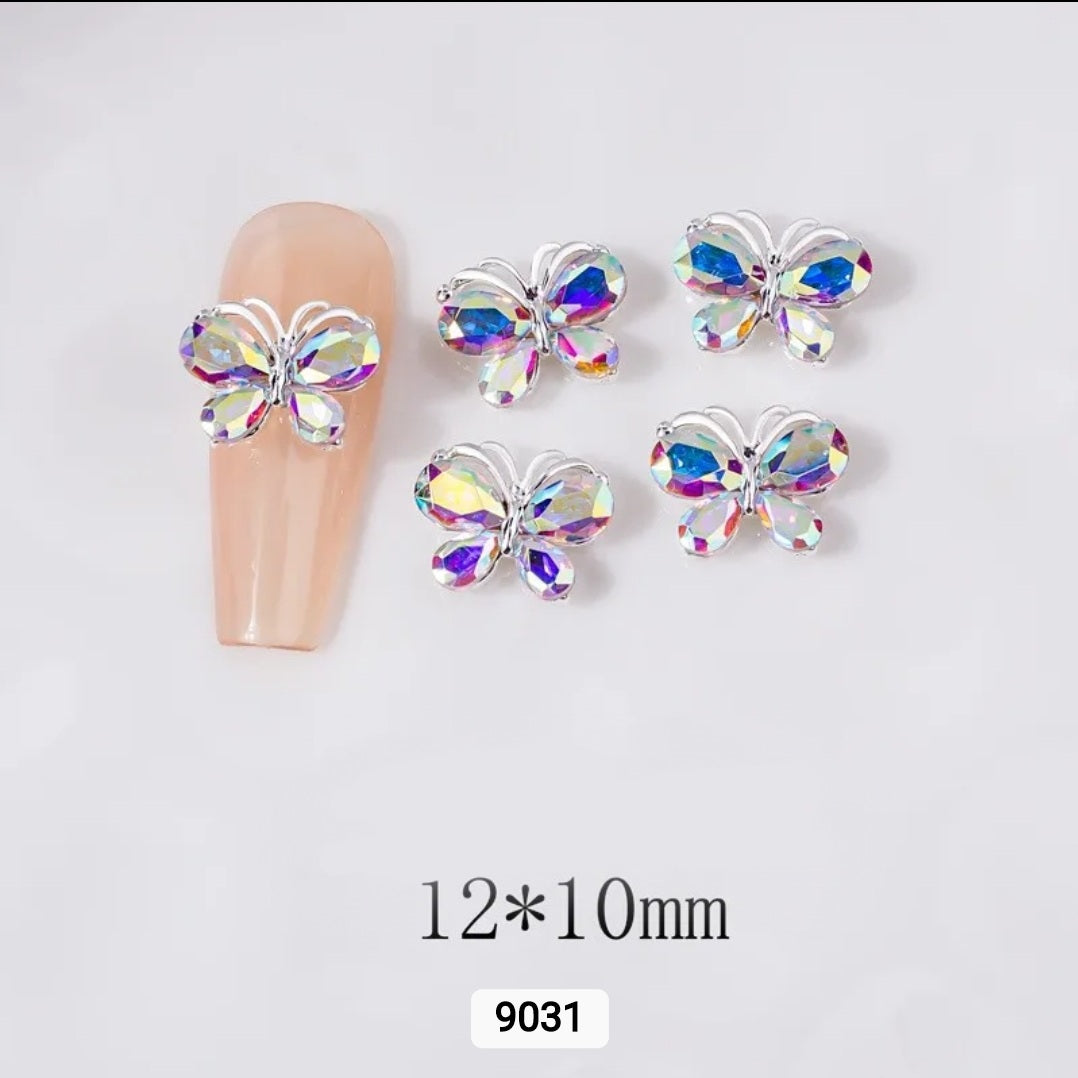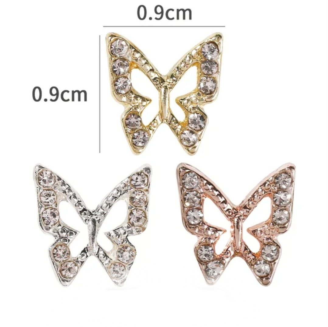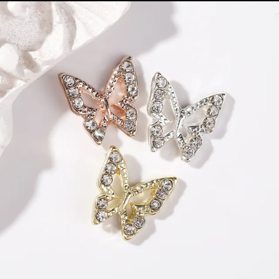 3D Hollow Butterfly with Rhinestones Metal Bling Nail Charms Silver Gold Rose Gold