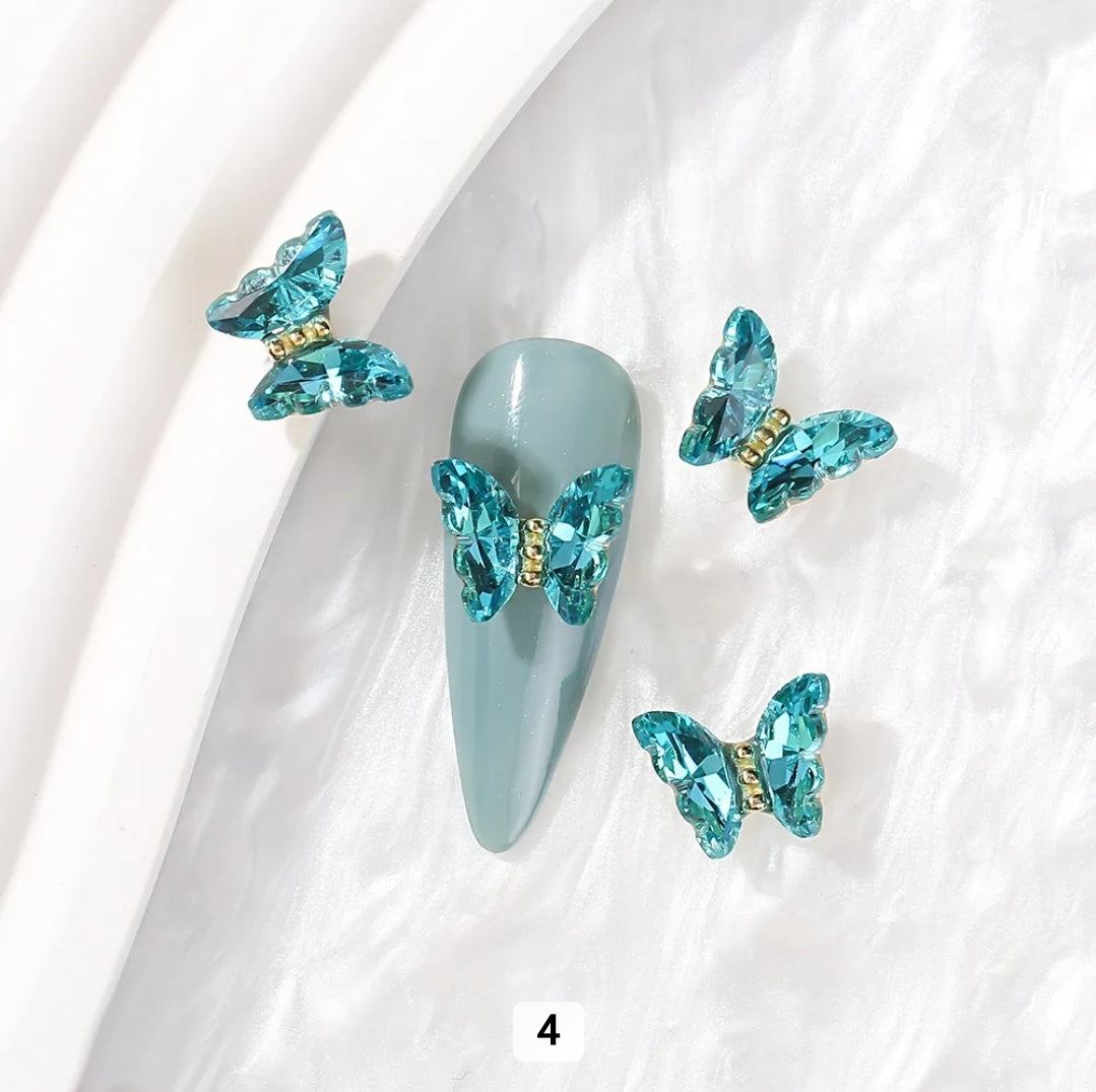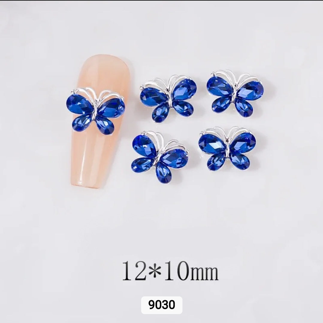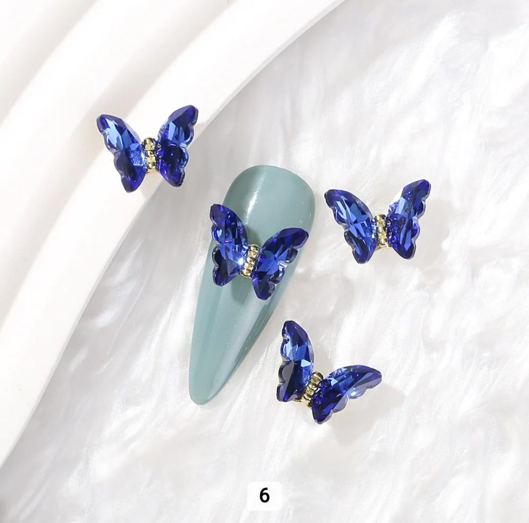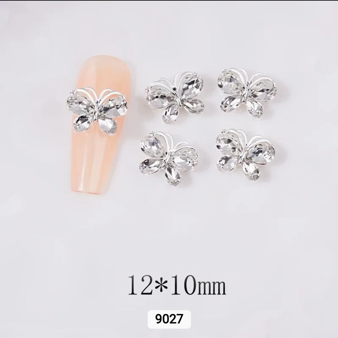 3D Hollow Butterfly with Rhinestones Metal Bling Nail Charms Silver Gold Rose Gold