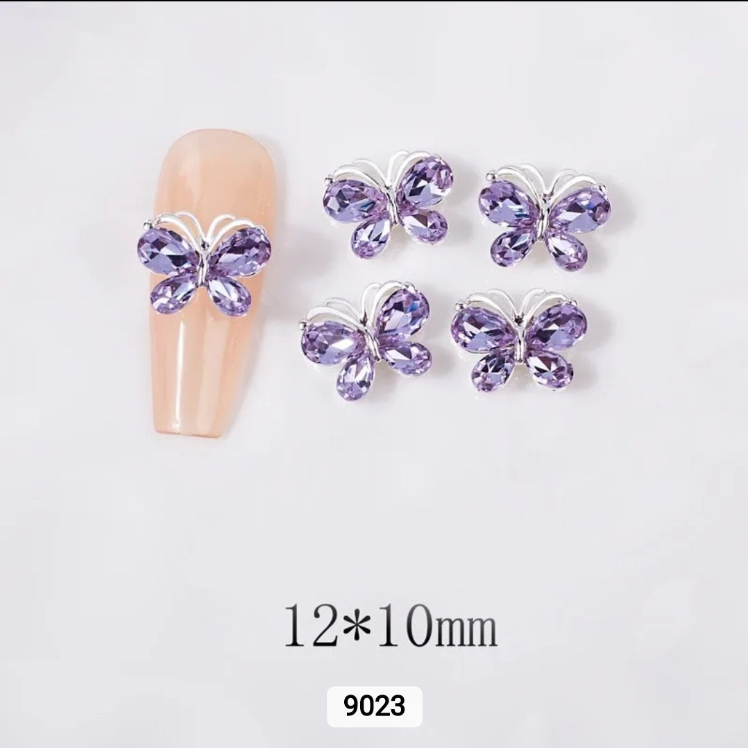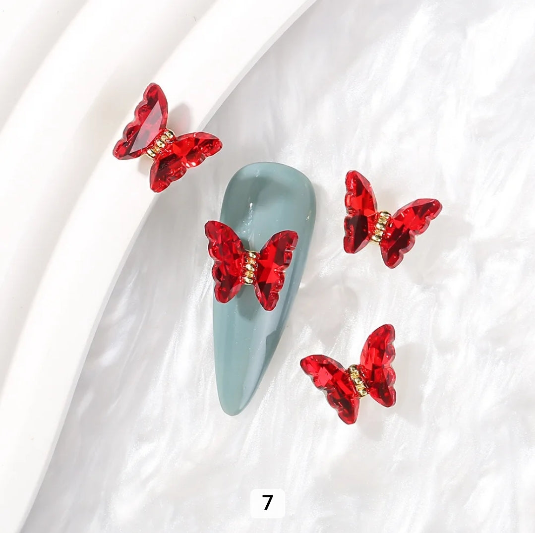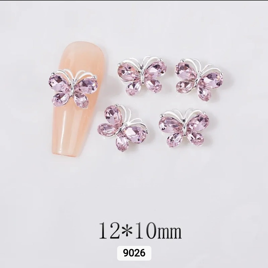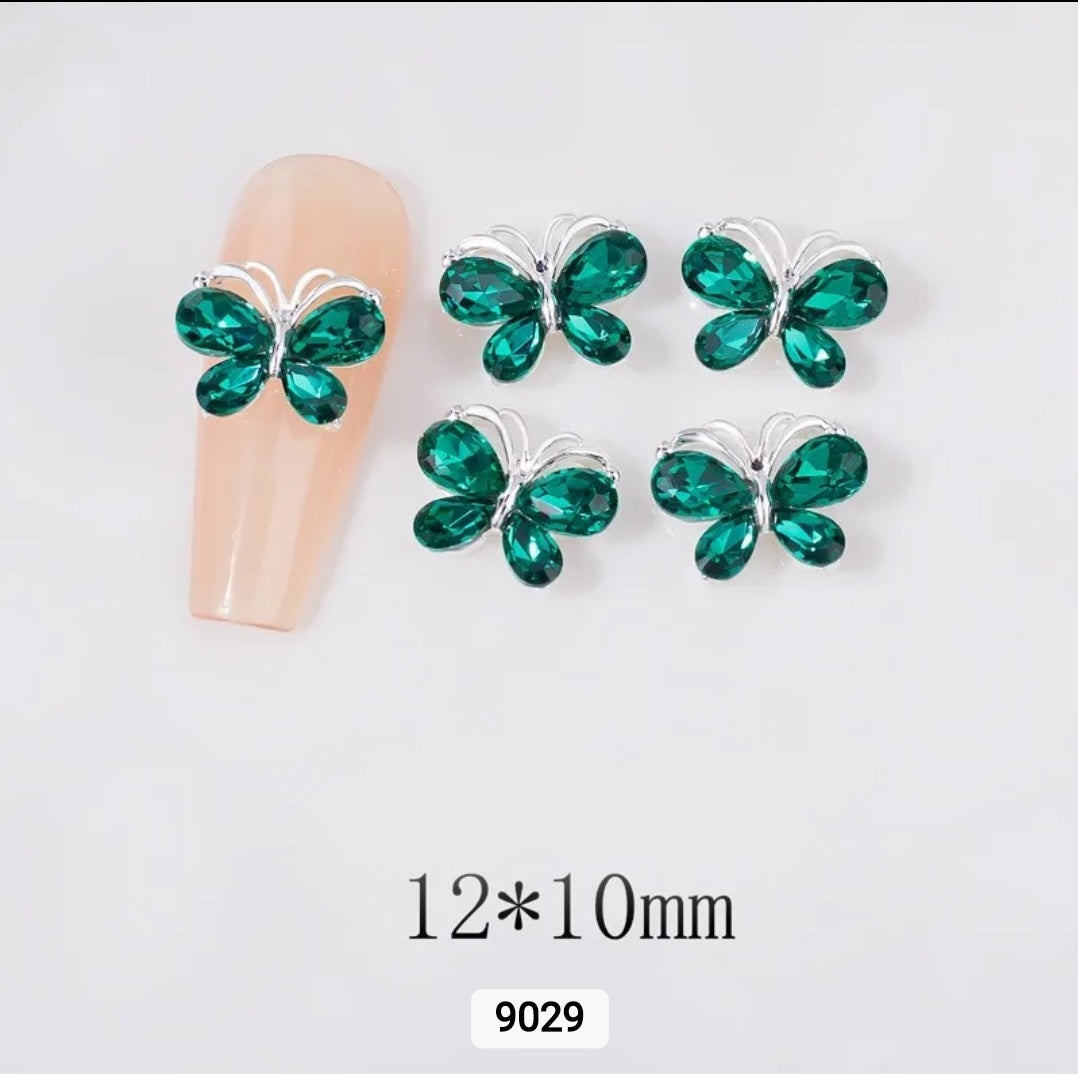 3D Hollow Butterfly with Rhinestones Metal Bling Nail Charms Silver Gold Rose Gold