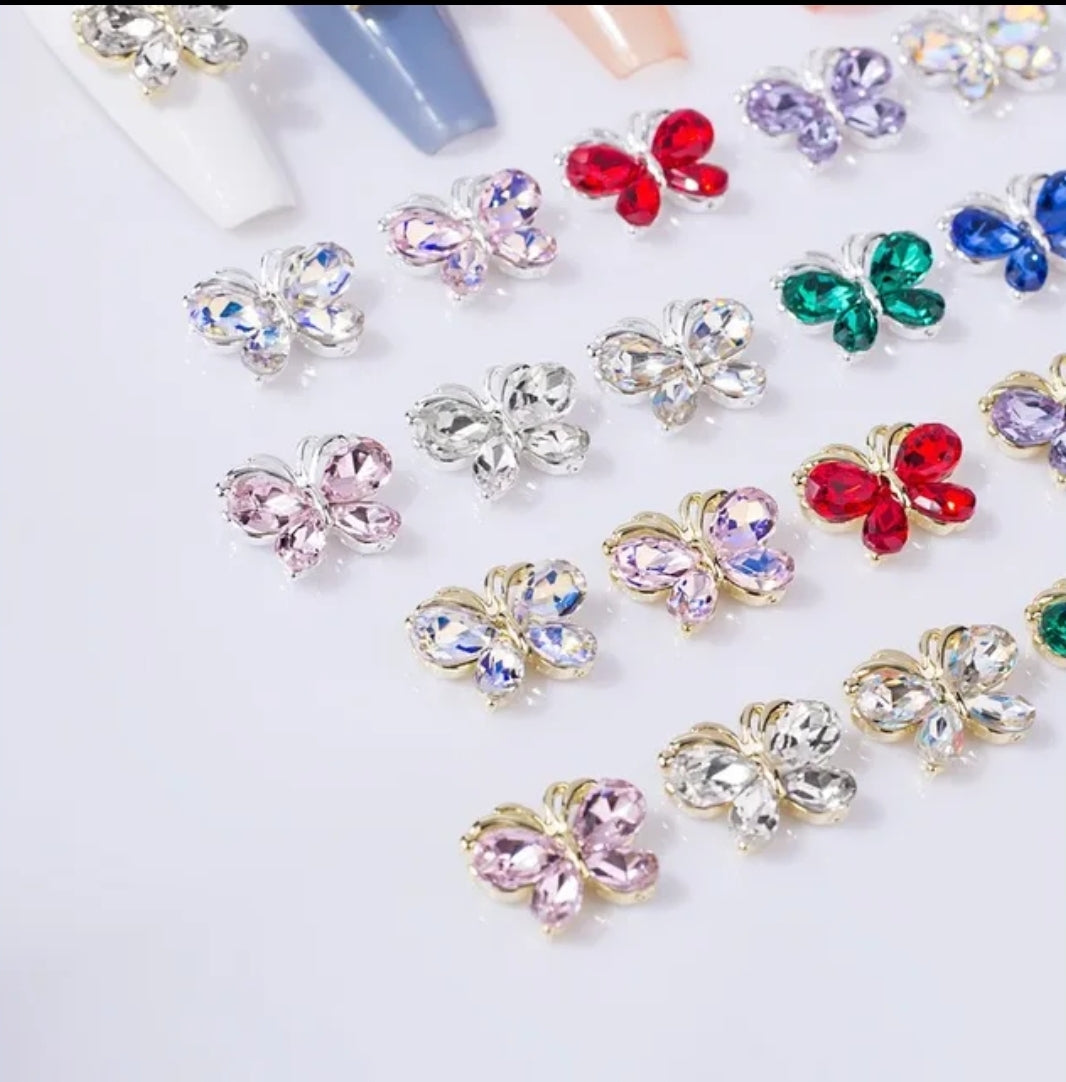 3D Butterfly Zircon Diamond Silver Back Nail Charms / Encantos de uñas de mariposa