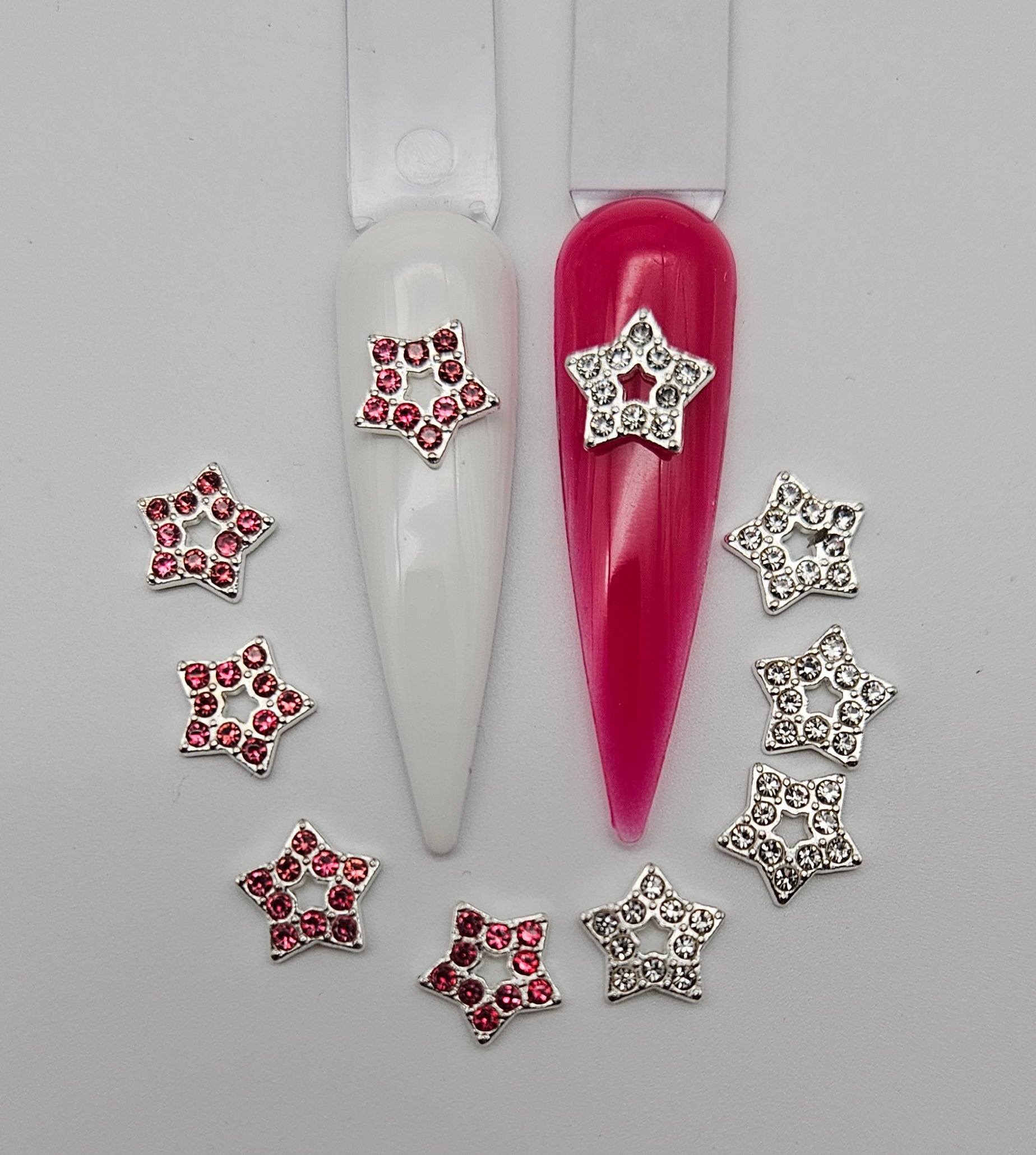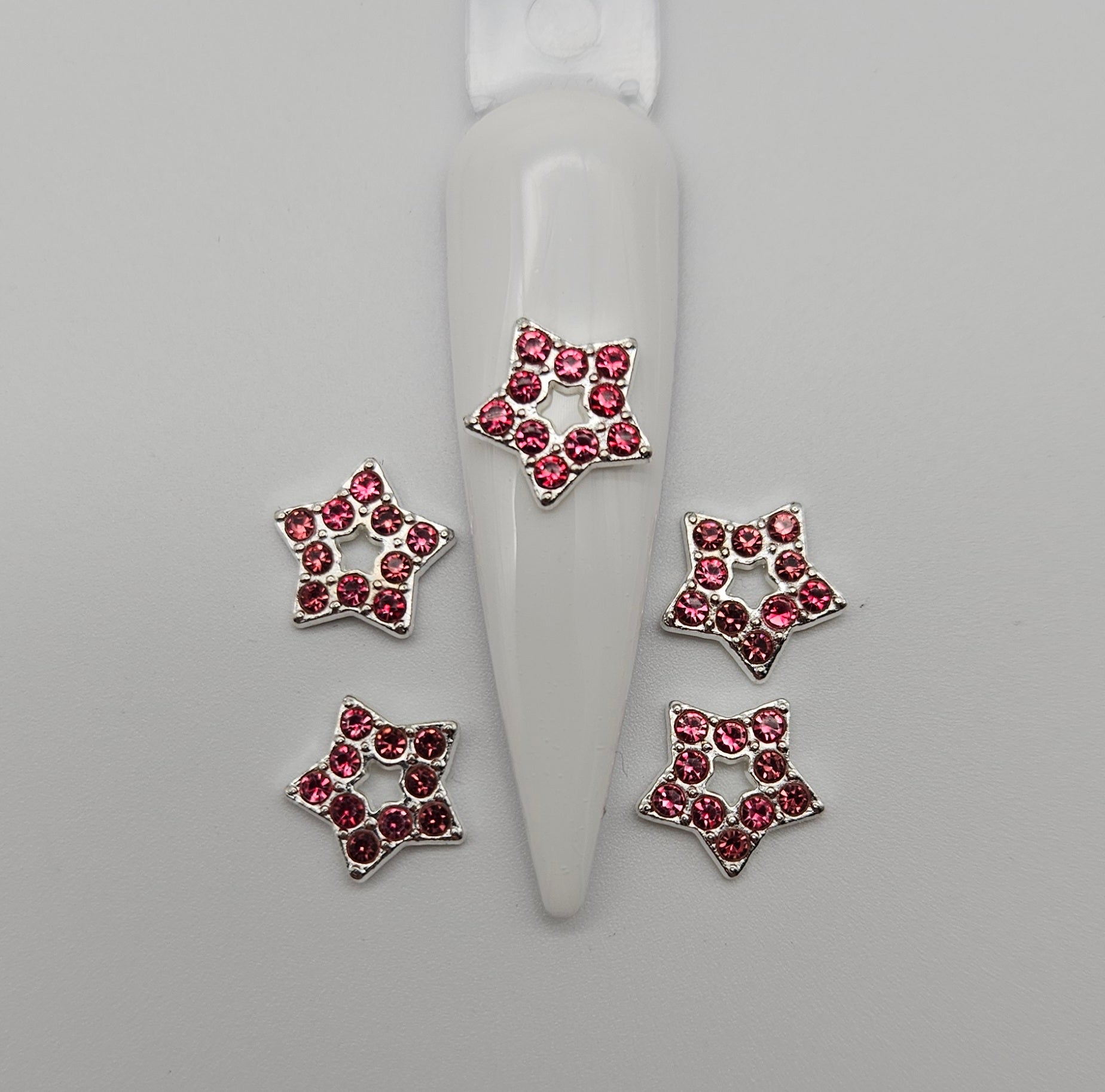 5pcs Stars with Rhinestones Nail Charm Pink and Silver