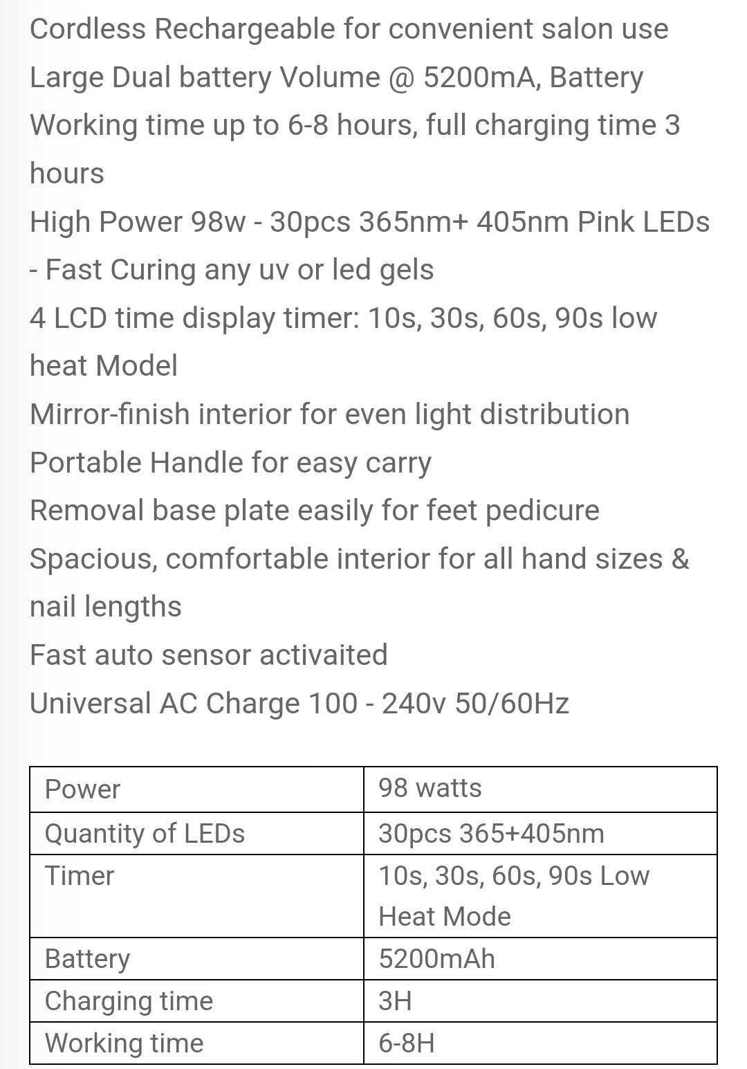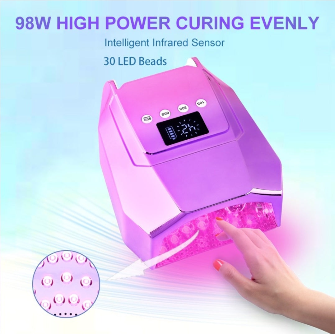 High Power 98w - 30pcs 365nm+ 405nm Pink LEDs - Fast Curing any uv or led gels
