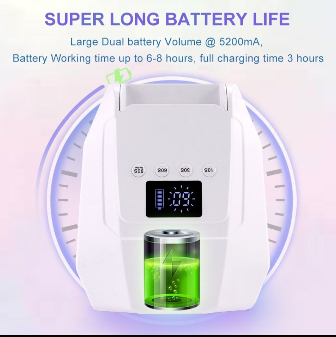 Large Dual battery Volume @ 5200mA, Battery Working time up to 6-8 hours, full charging time 3 hours