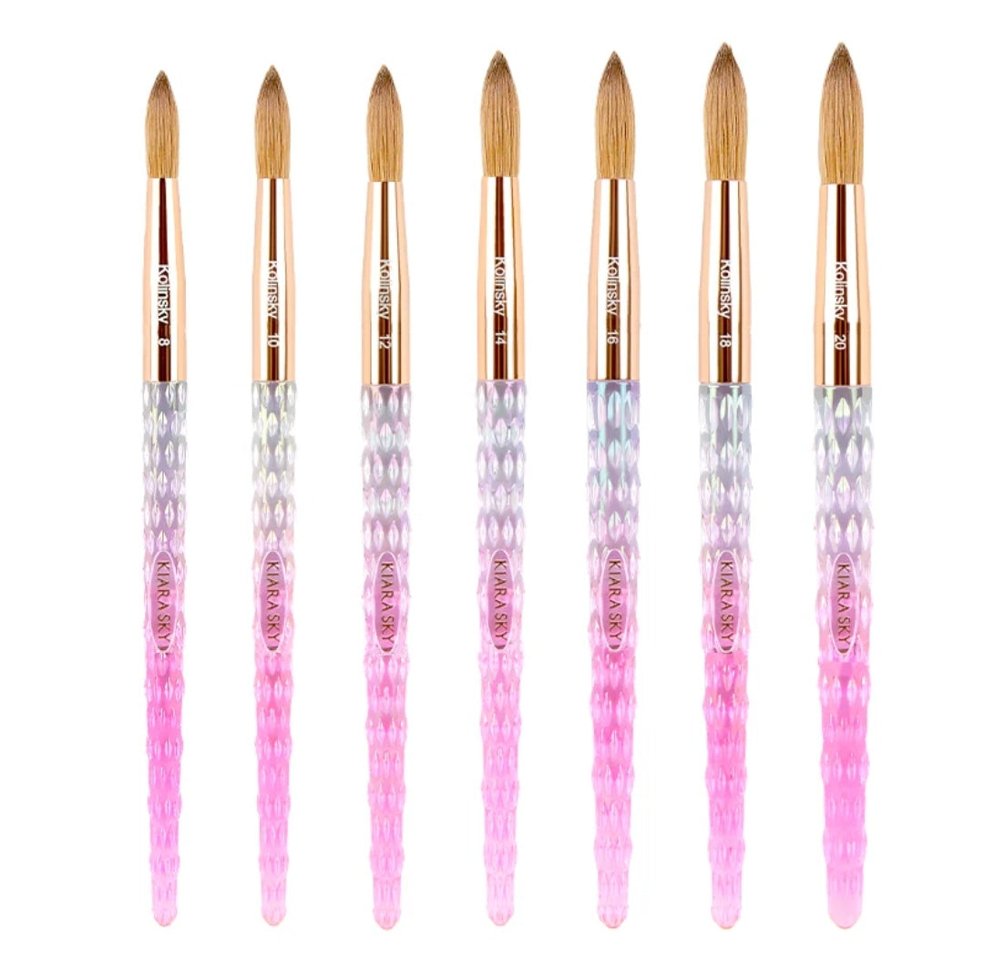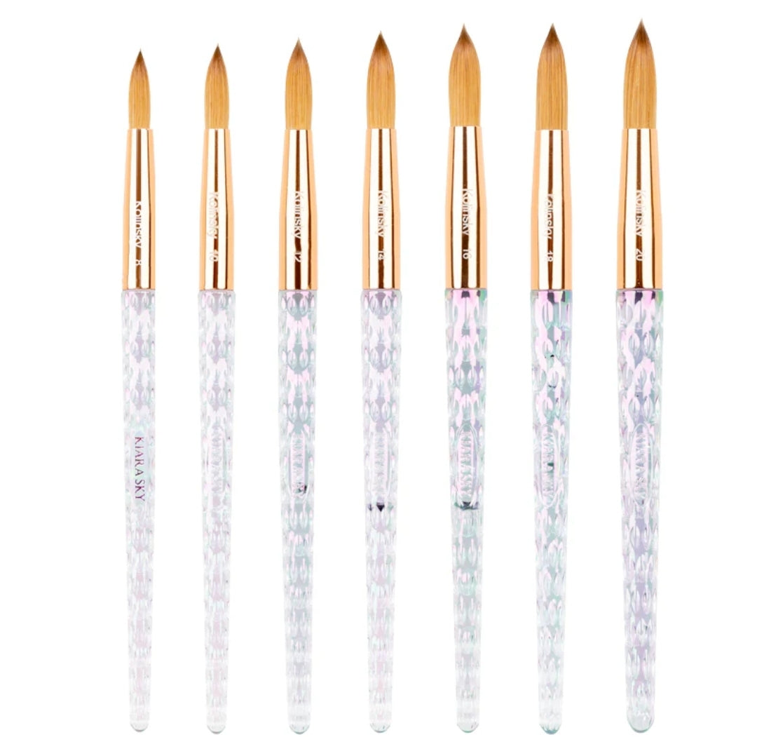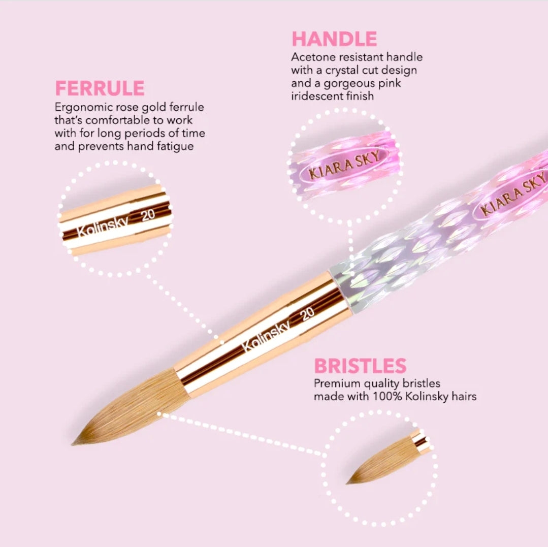 Experience unparalleled acrylic application with Kiara Sky's 100% pure Kolinsky Acrylic Brush. Proudly recognized as the #1 Acrylic Brush in the industry, our professional acrylic brushes reflect a perfect fusion of quality and innovation. Made to last, each brush has been carefully designed with a unique patented ergonomic design and is 100% hand-crafted from the finest materials. Each element of this Kiara Sky Acrylic Brush has been considered, from the stunning crystal cut handle and acetone resistant structure, to the soft flexible bristles that provide you with an effortless and smooth acrylic application.
