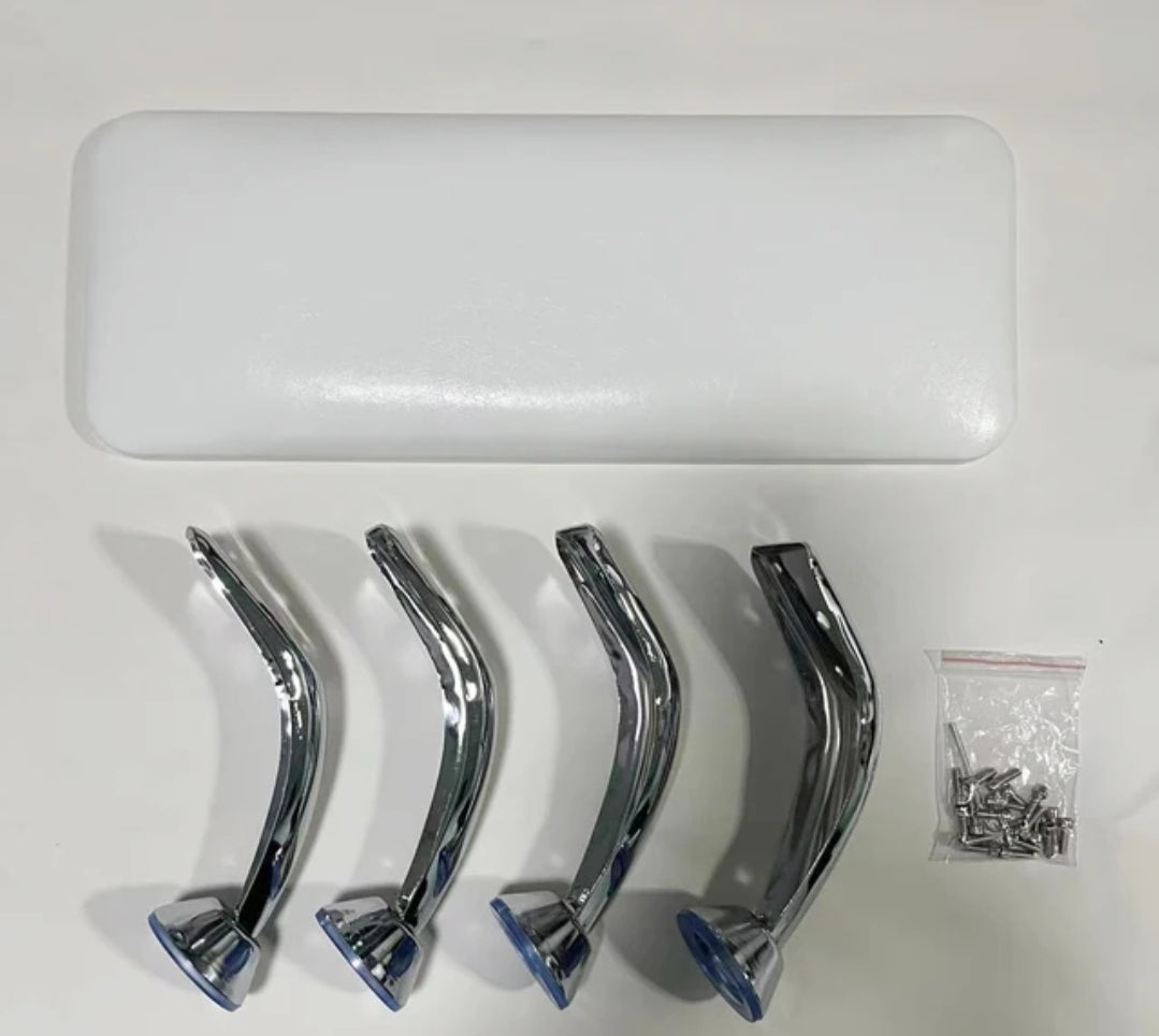All arm rests come in box with silver legs and tools as pictured. New versions now come with anti-slip sticker for the bottom of the legs. Light assembly required. Gold Legs available as a separate option and can be purchased separately.