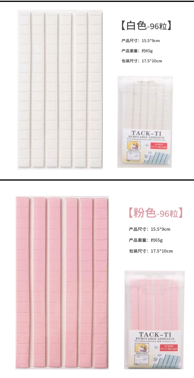 Tips Adhesive has 96pcs in White or Pink. It is easy removal clay like texture.